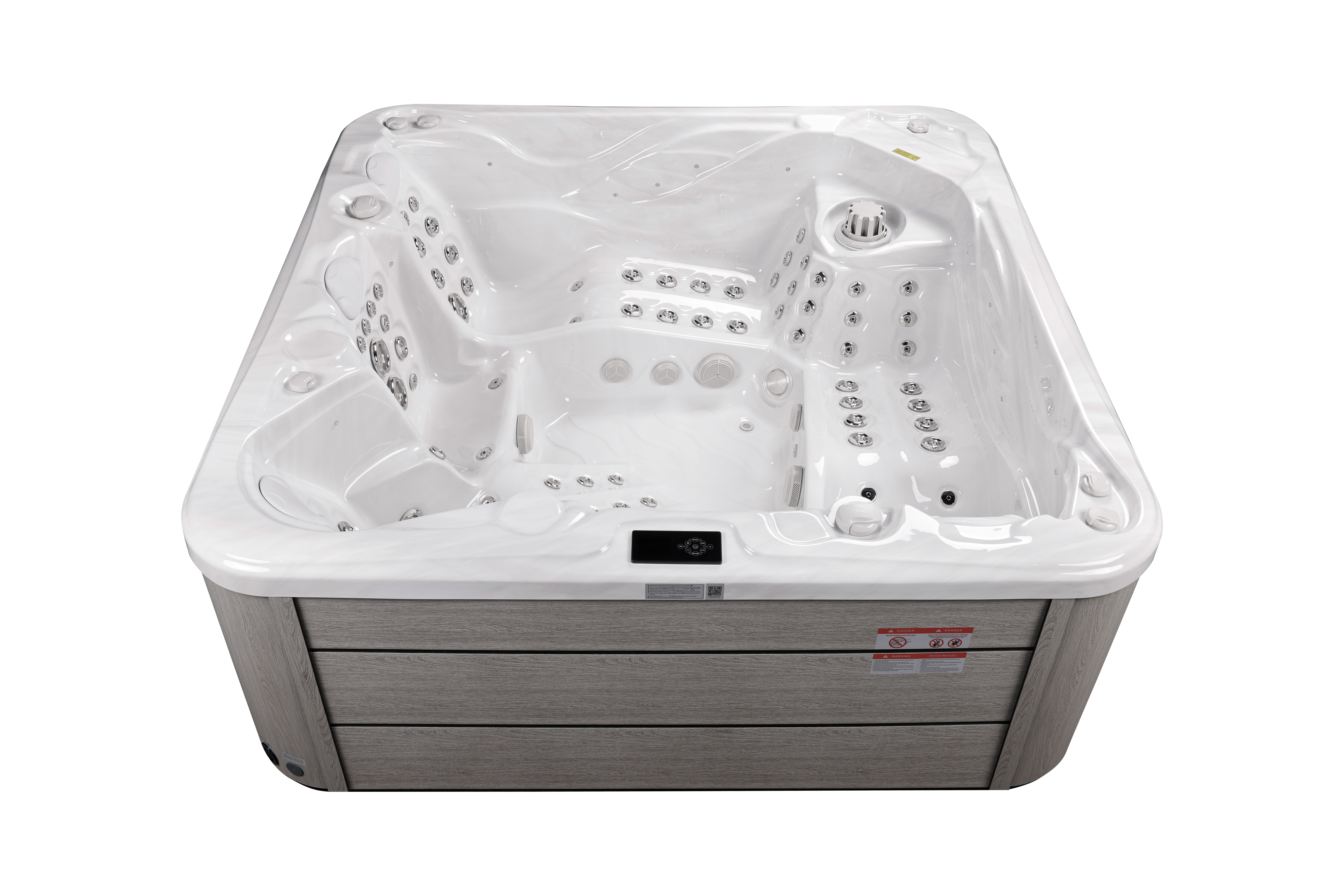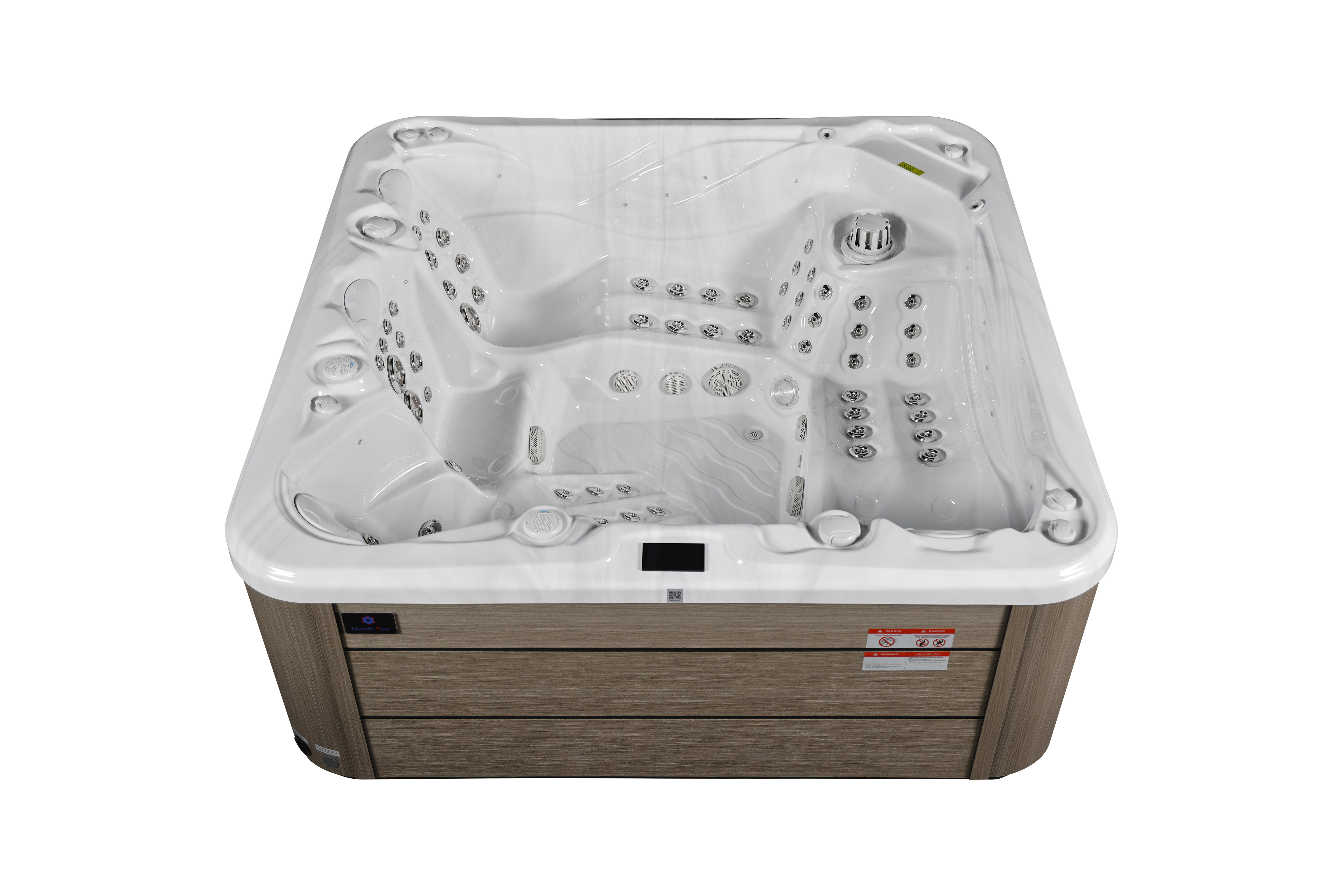 NordicSpa Khed с размером чаши 2,3 x 2,3 м идеально подходит для установки как в помещении, так и на улице. Просторная чаша с четырьмя эргономичными подголовниками комфортно вмещает до пяти человек, создавая условия для полноценного отдыха и общения.